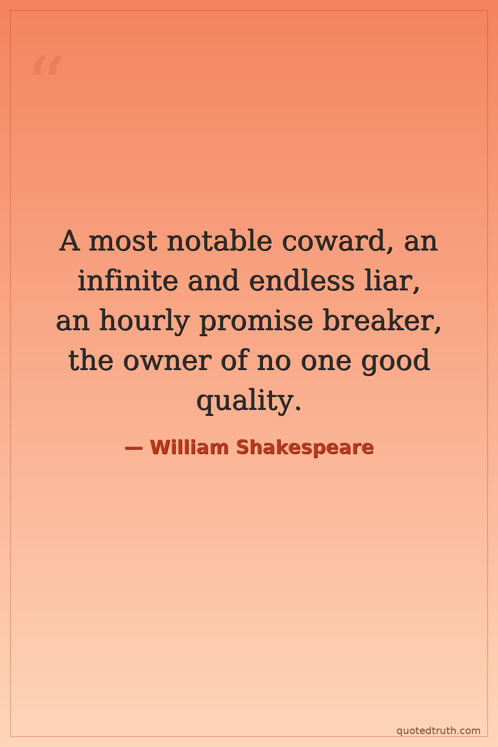 A most notable coward, an infinite and endless liar, an hourly promise breaker, the owner of no one good quality.