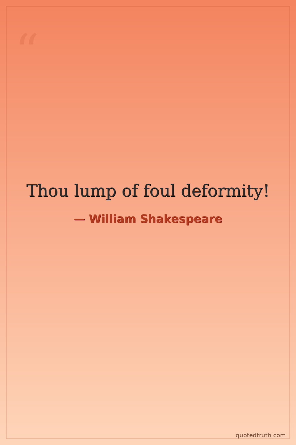 Thou lump of foul deformity!