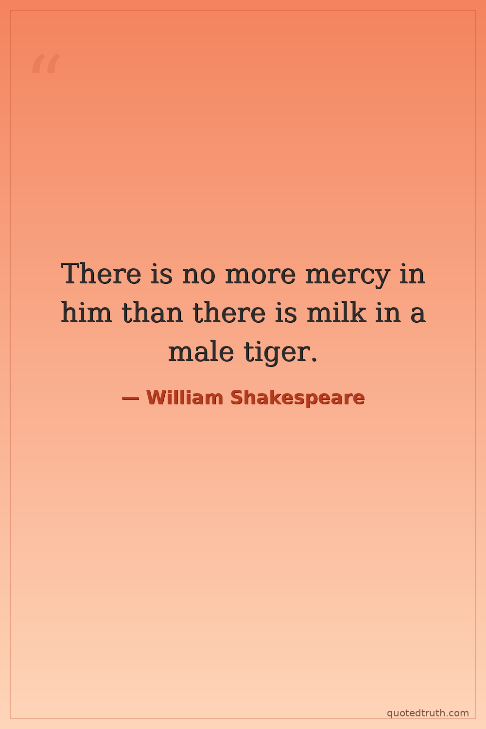 There is no more mercy in him than there is milk in a male tiger.