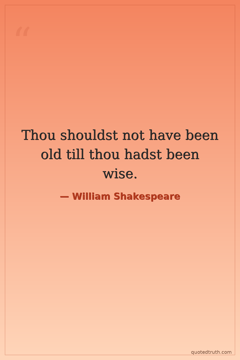 Thou shouldst not have been old till thou hadst been wise.