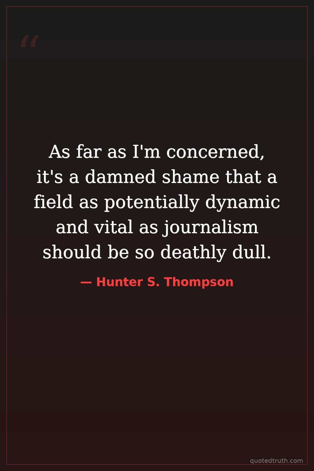As far as I'm concerned, it's a damned shame that a field as potentially dynamic and vital as journalism should be so deathly dull.