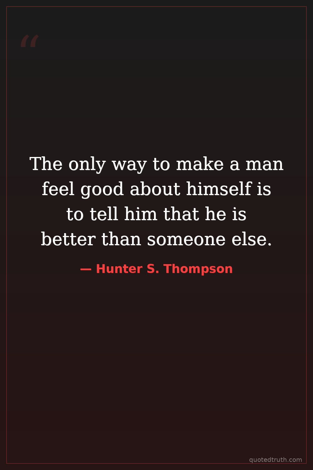 The only way to make a man feel good about himself is to tell him that he is better than someone else.