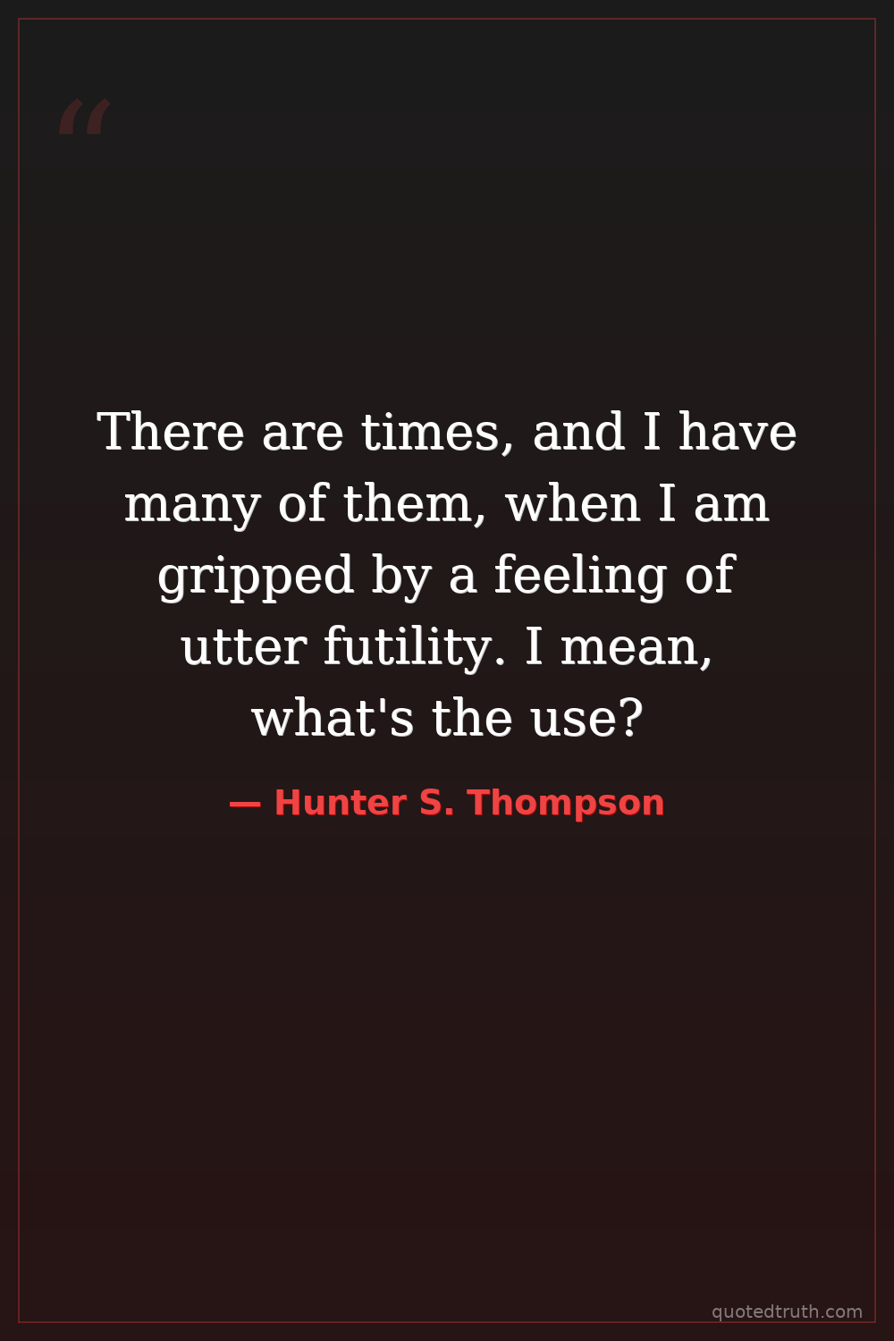 There are times, and I have many of them, when I am gripped by a feeling of utter futility. I mean, what's the use?