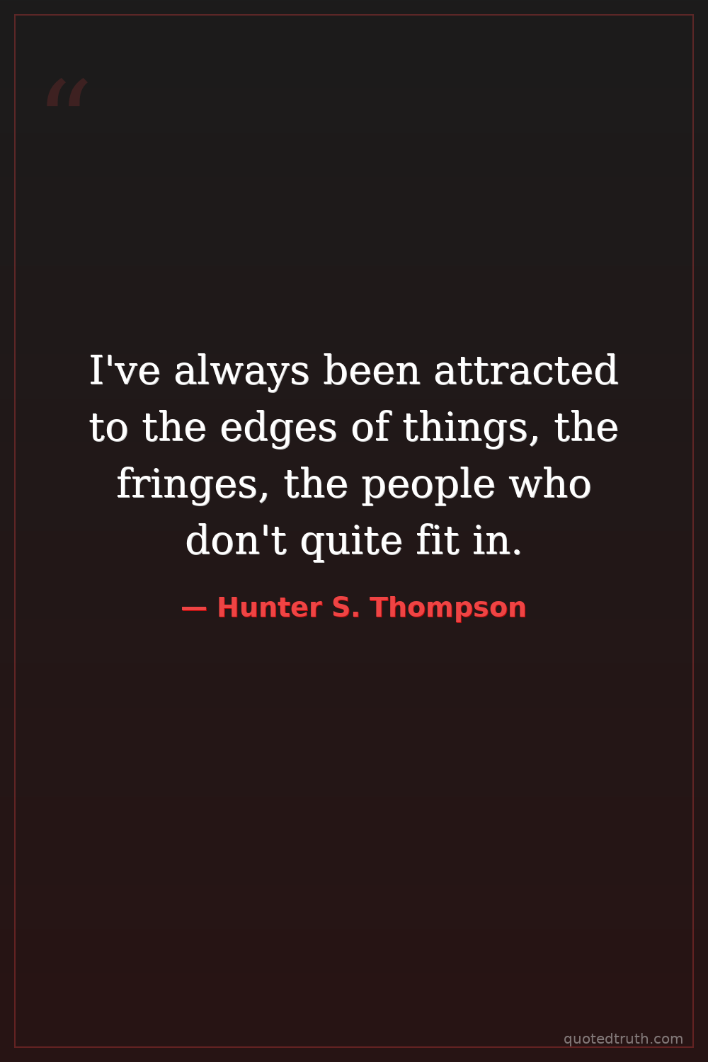 I've always been attracted to the edges of things, the fringes, the people who don't quite fit in.