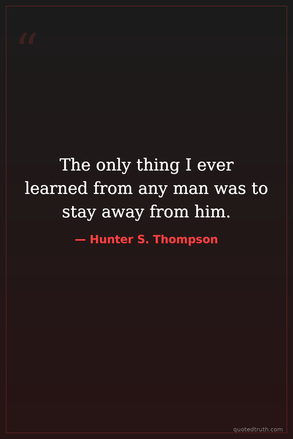The only thing I ever learned from any man was to stay away from him.