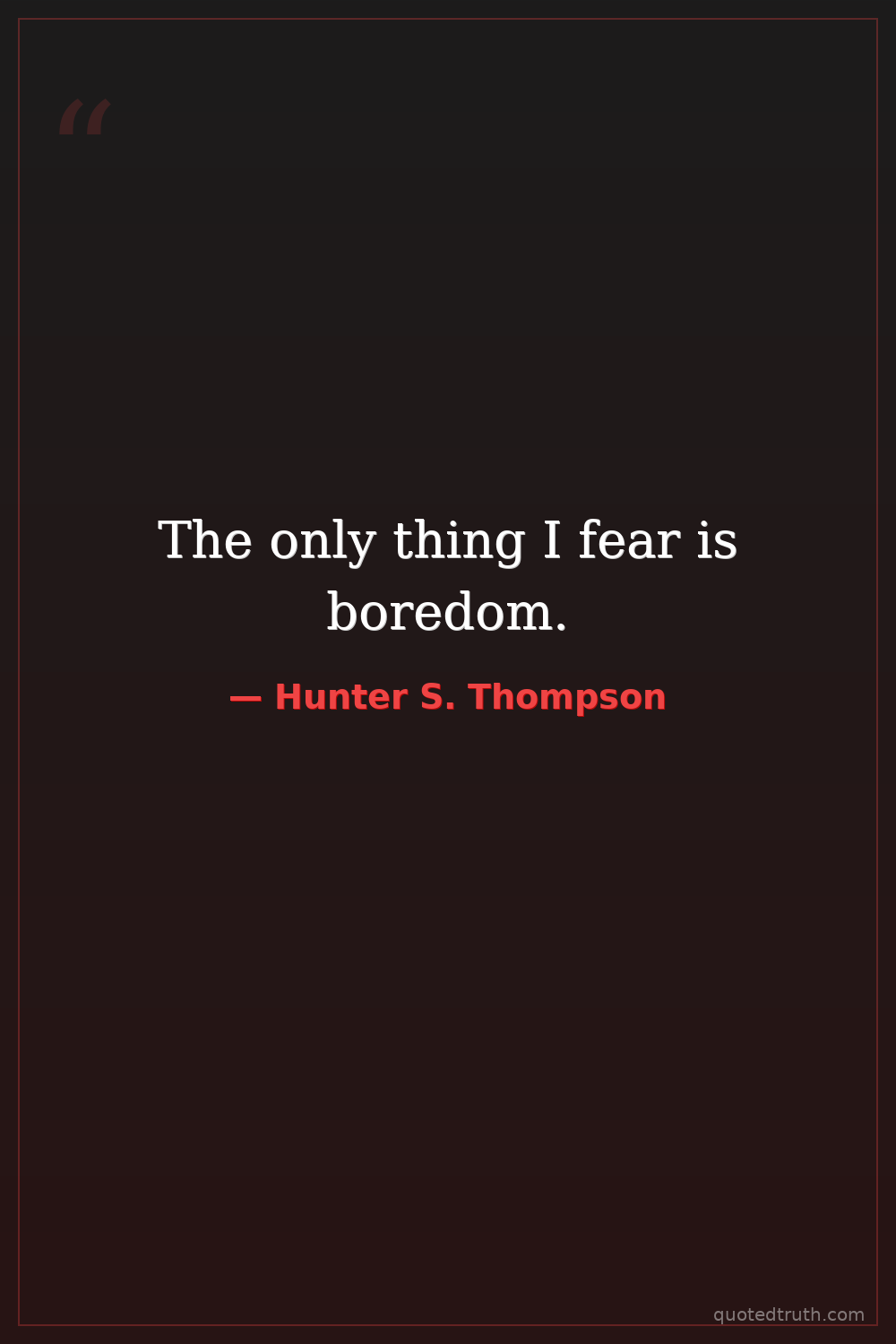 The only thing I fear is boredom.