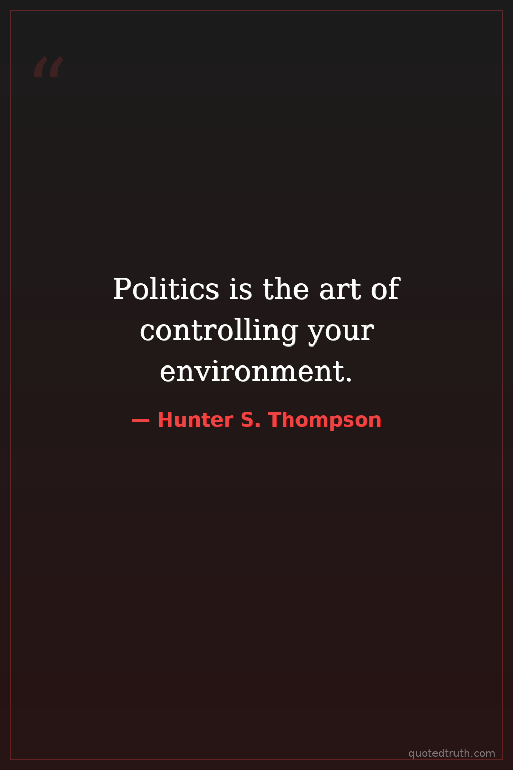 Politics is the art of controlling your environment.