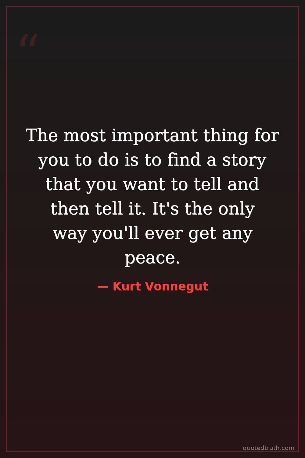 The most important thing for you to do is to find a story that you want to tell and then tell it. It's the only way you'll ever get any peace.