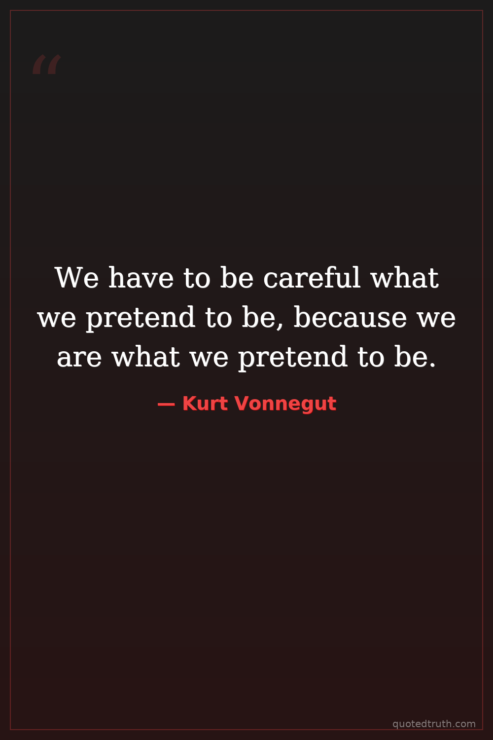 We have to be careful what we pretend to be, because we are what we pretend to be.