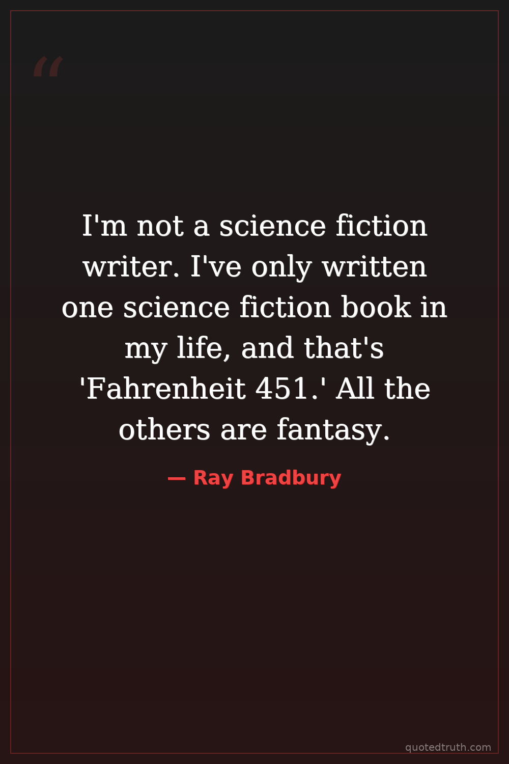 I'm not a science fiction writer. I've only written one science fiction book in my life, and that's 'Fahrenheit 451.' All the others are fantasy.