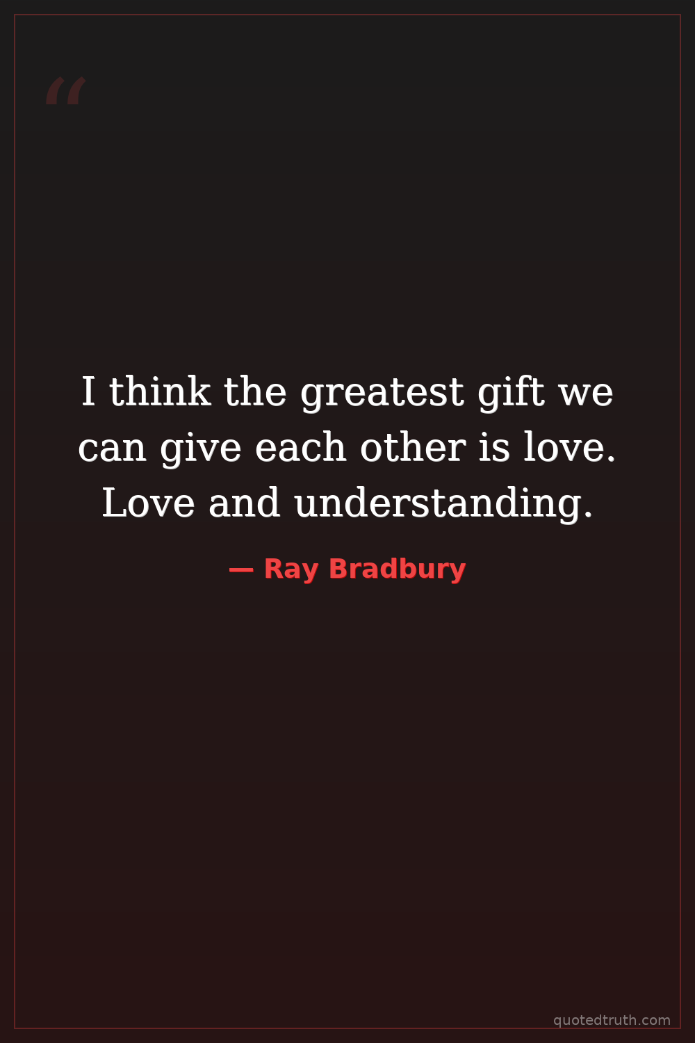 I think the greatest gift we can give each other is love. Love and understanding.