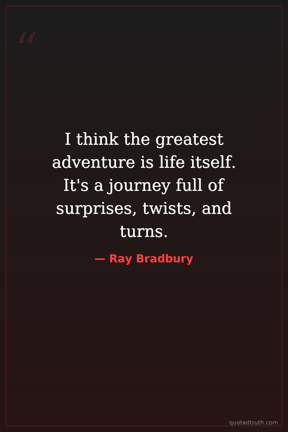 I think the greatest adventure is life itself. It's a journey full of surprises, twists, and turns.