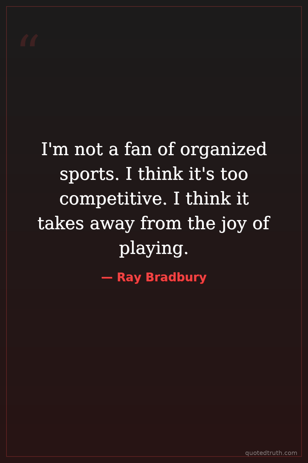 I'm not a fan of organized sports. I think it's too competitive. I think it takes away from the joy of playing.