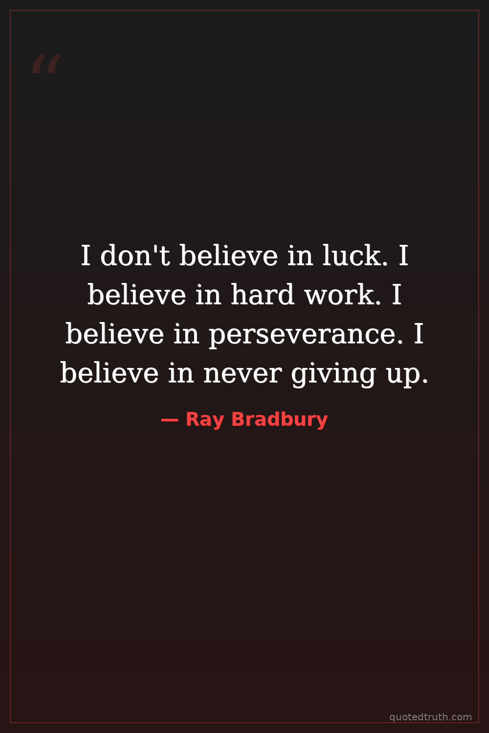 I don't believe in luck. I believe in hard work. I believe in perseverance. I believe in never giving up.