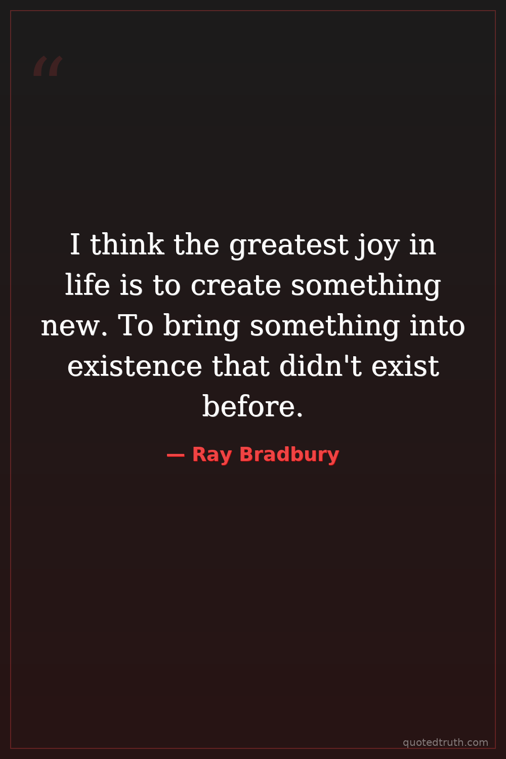 I think the greatest joy in life is to create something new. To bring something into existence that didn't exist before.