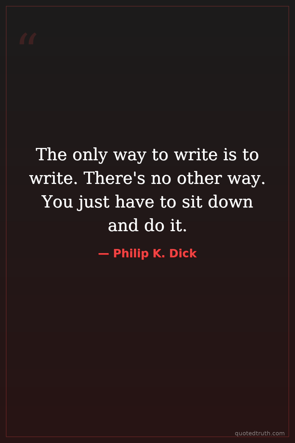 The only way to write is to write. There's no other way. You just have to sit down and do it.