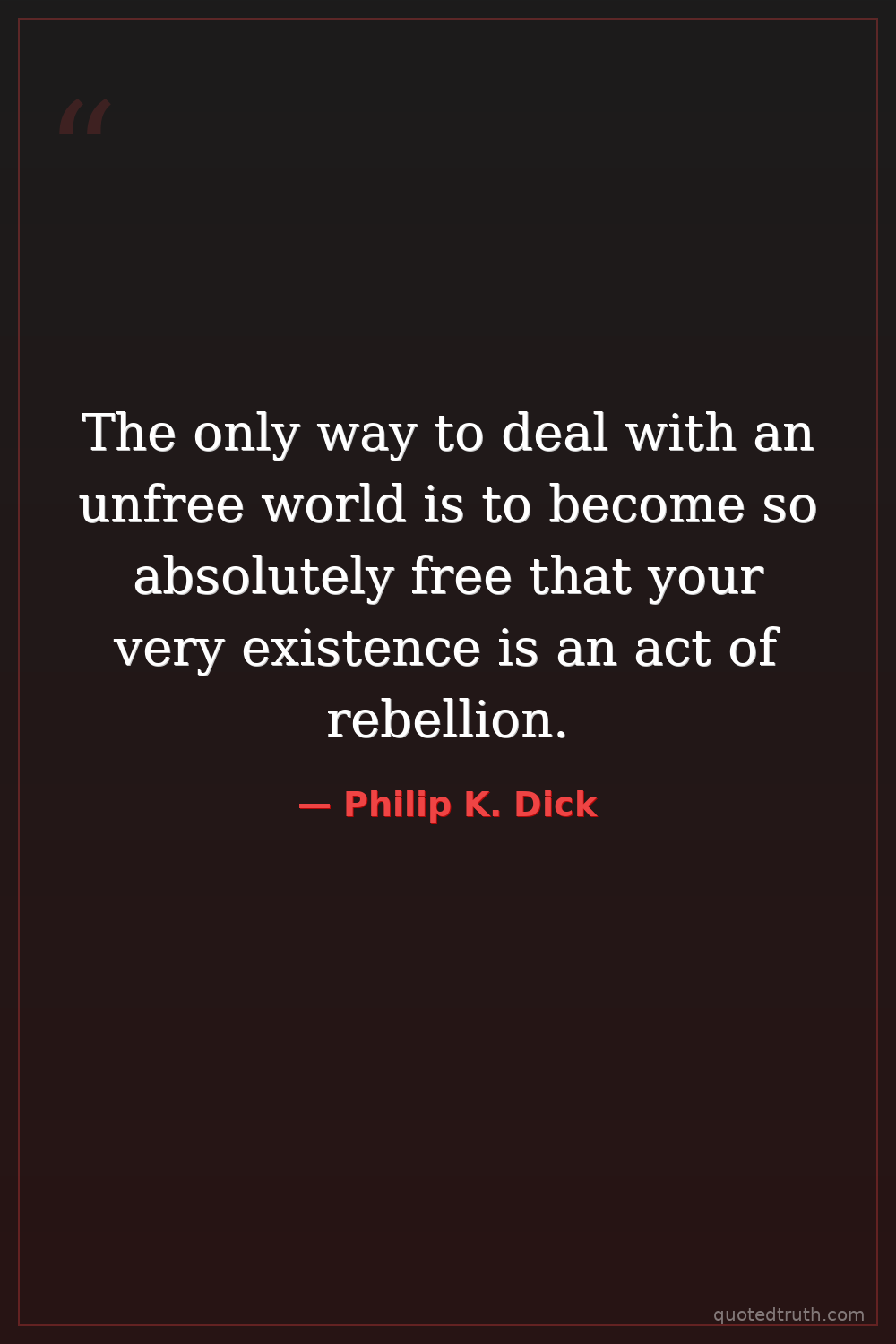 The only way to deal with an unfree world is to become so absolutely free that your very existence is an act of rebellion.