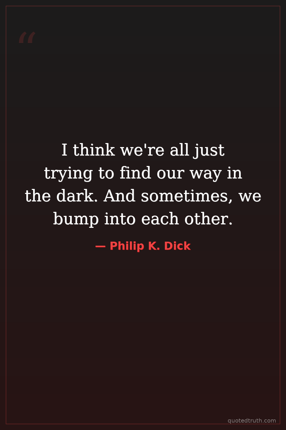 I think we're all just trying to find our way in the dark. And sometimes, we bump into each other.