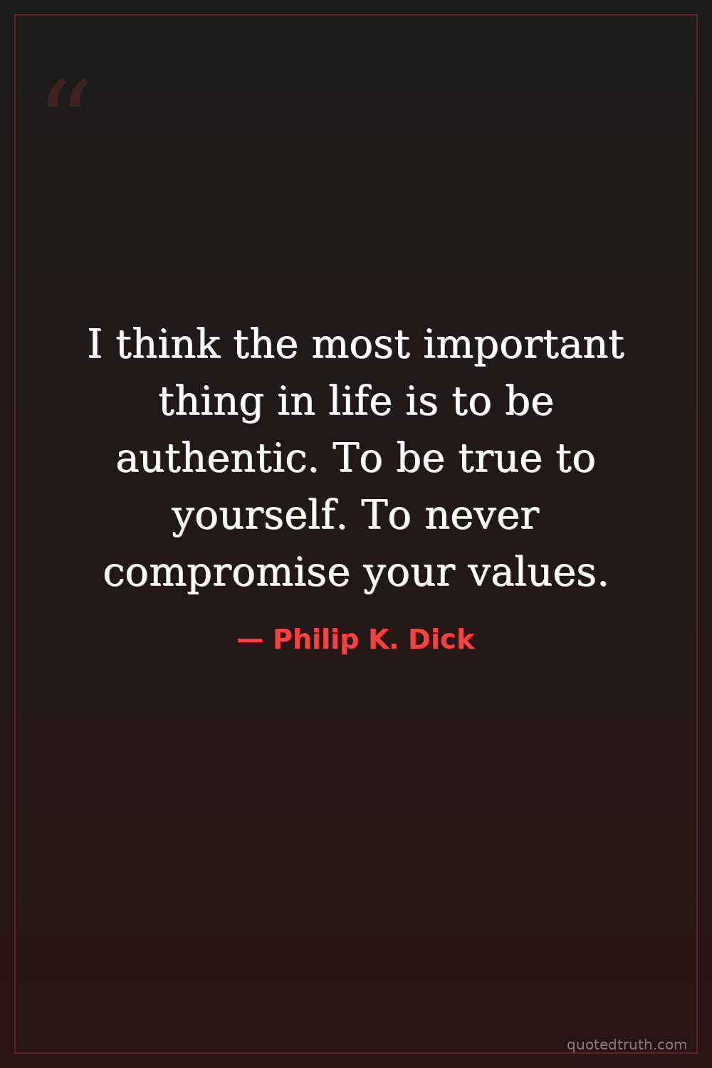 I think the most important thing in life is to be authentic. To be true to yourself. To never compromise your values.