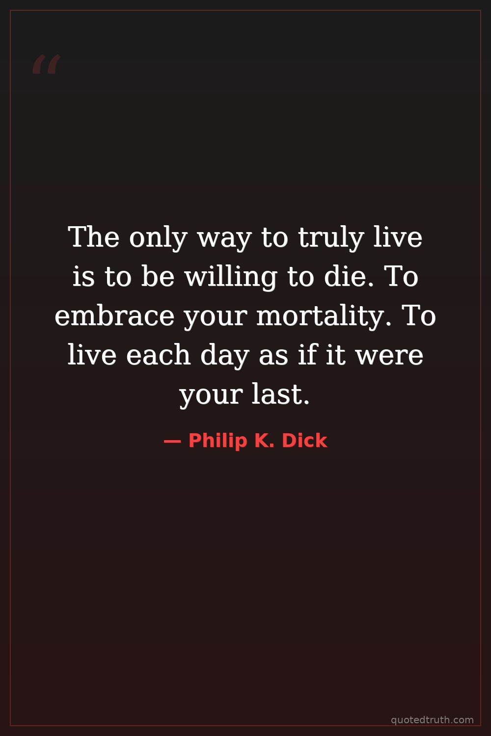 The only way to truly live is to be willing to die. To embrace your mortality. To live each day as if it were your last.
