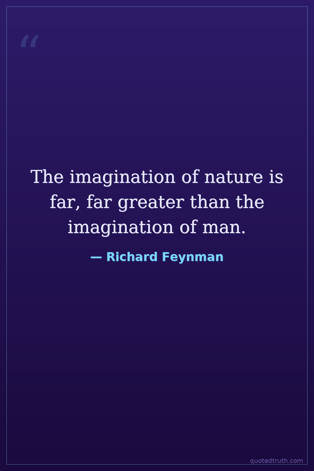 The imagination of nature is far, far greater than the imagination of man.