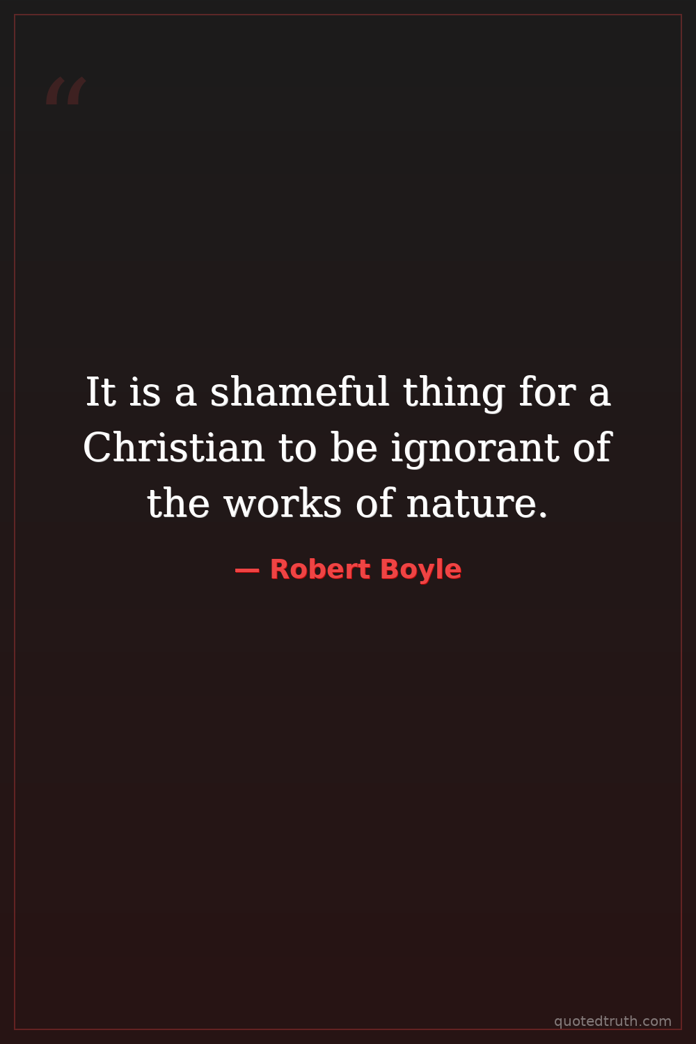 It is a shameful thing for a Christian to be ignorant of the works of nature.