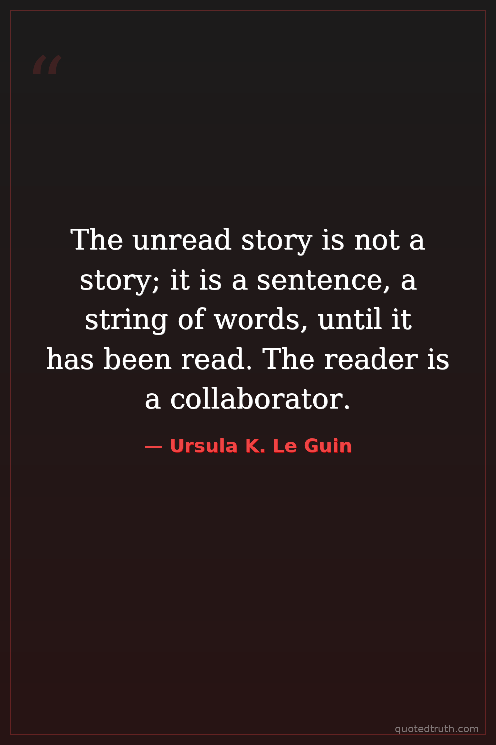 The unread story is not a story; it is a sentence, a string of words, until it has been read. The reader is a collaborator.