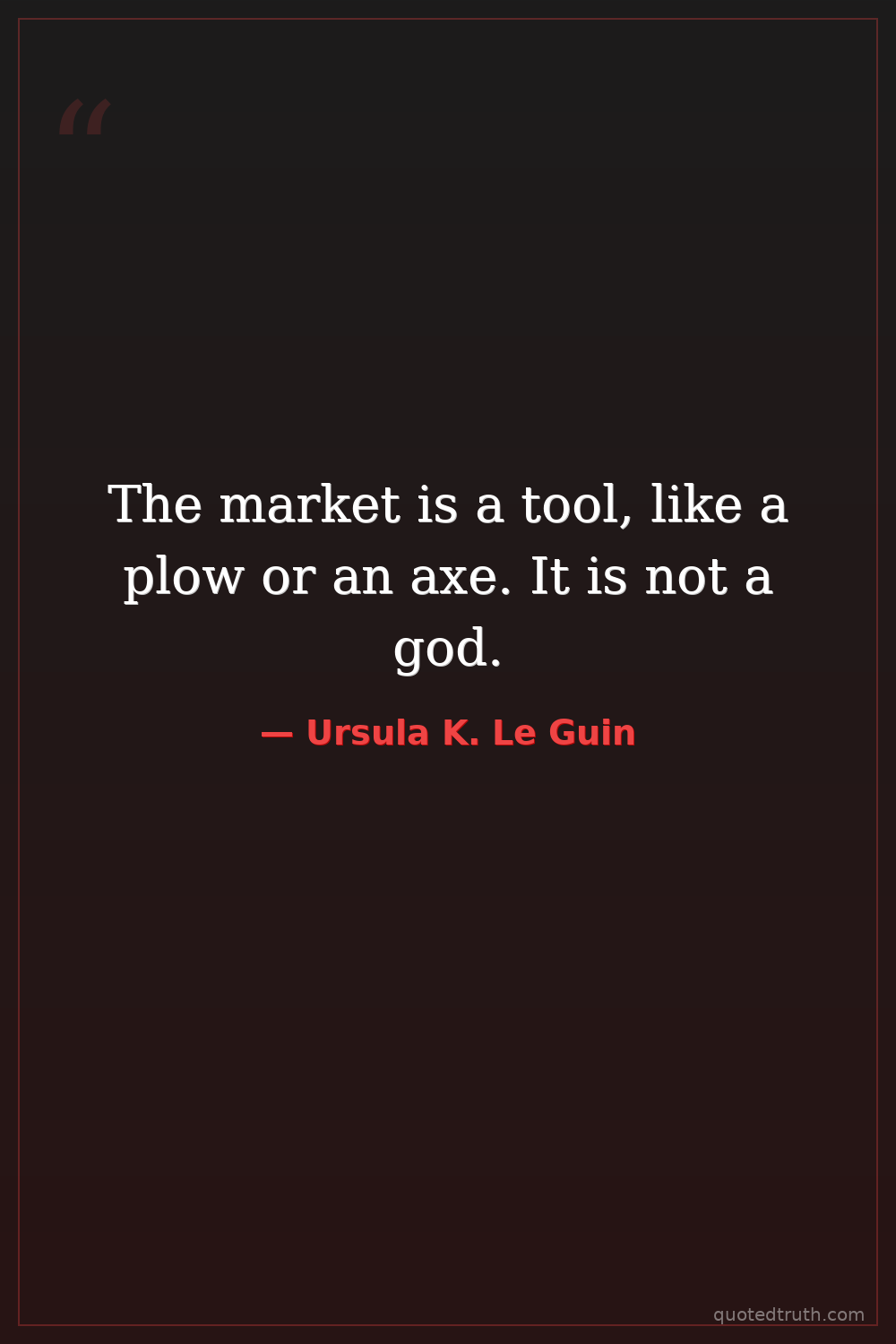 The market is a tool, like a plow or an axe. It is not a god.