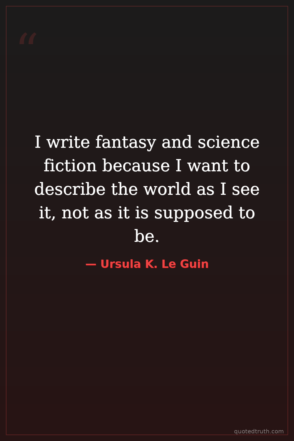 I write fantasy and science fiction because I want to describe the world as I see it, not as it is supposed to be.