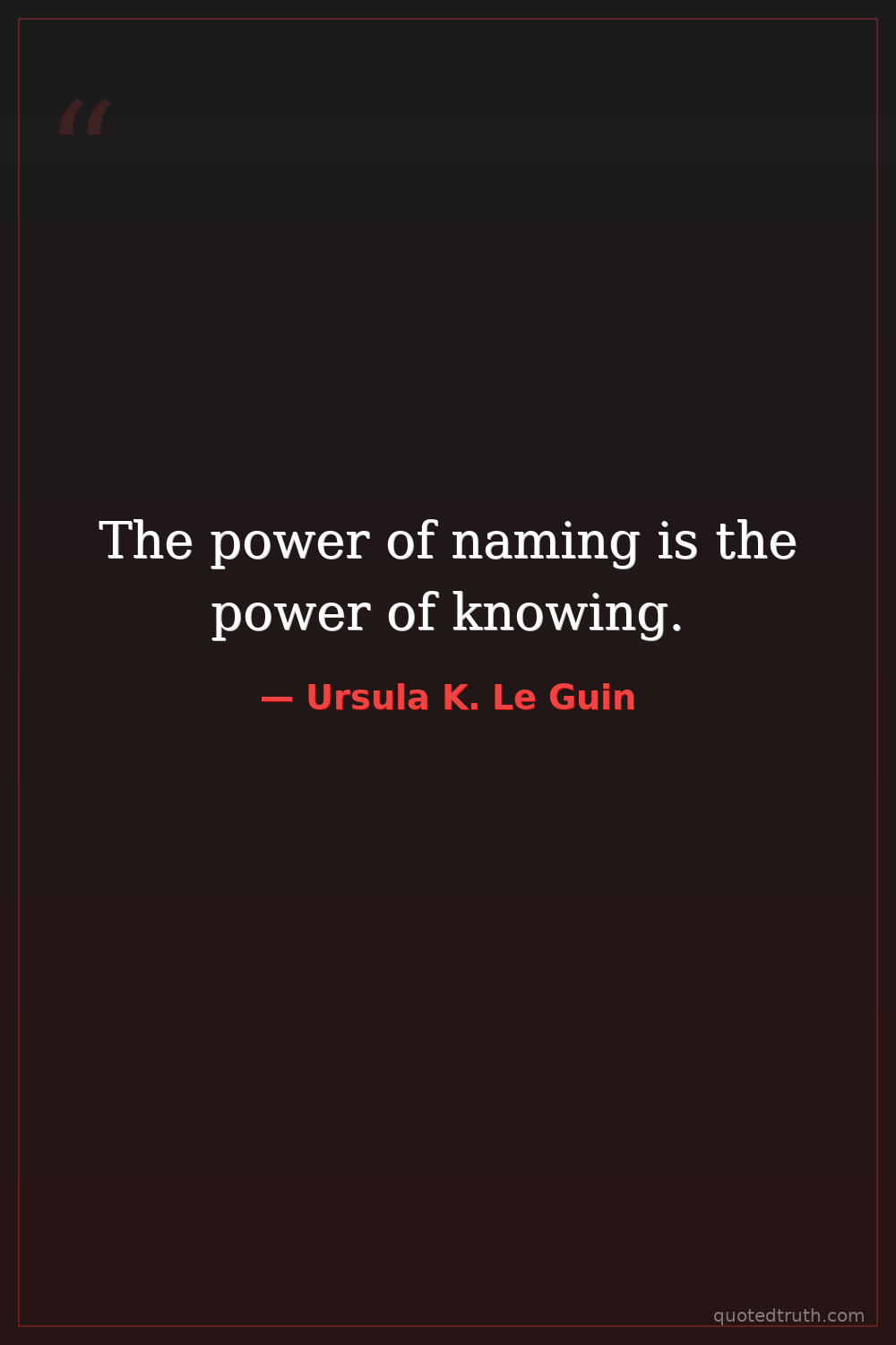 The power of naming is the power of knowing.