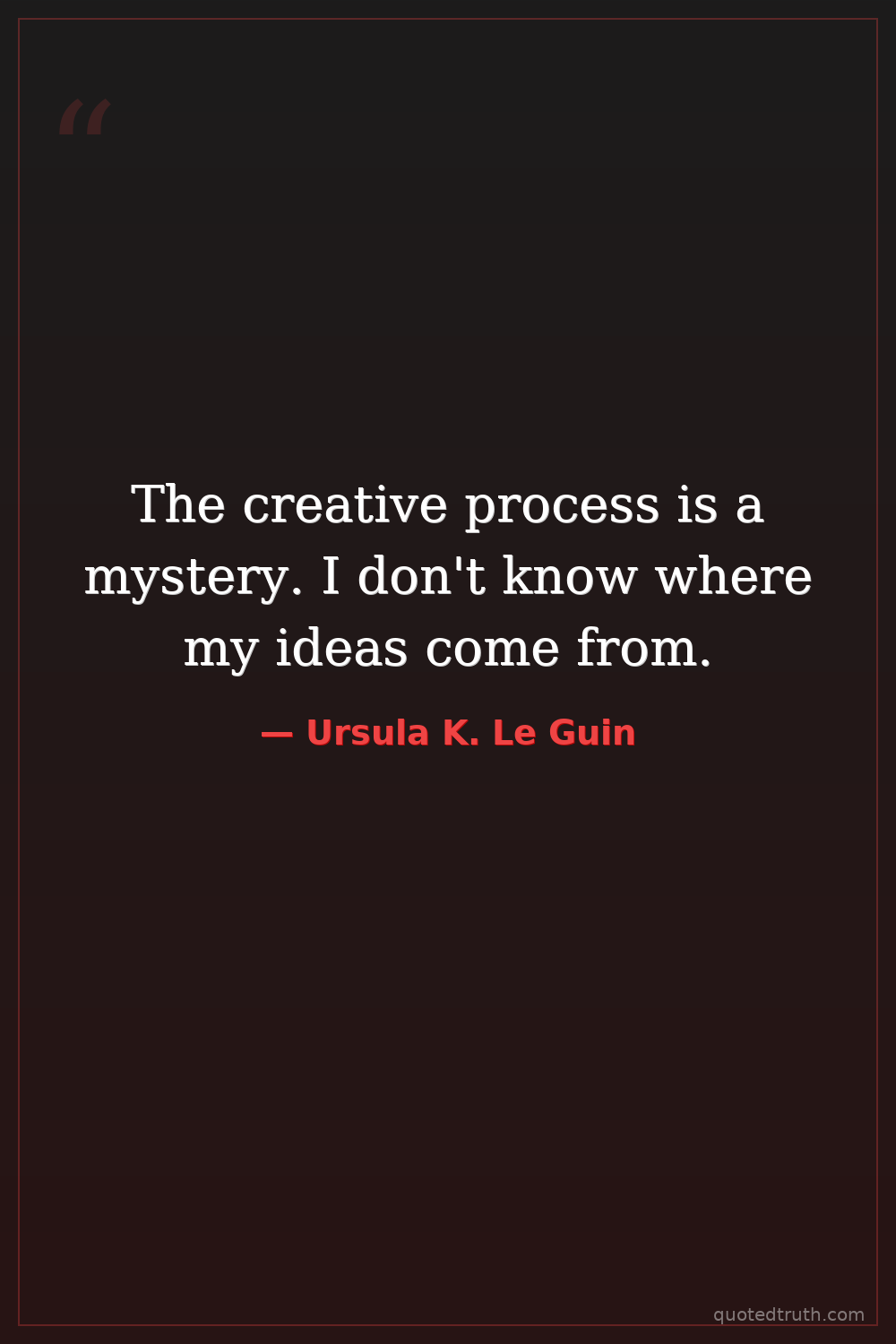 The creative process is a mystery. I don't know where my ideas come from.