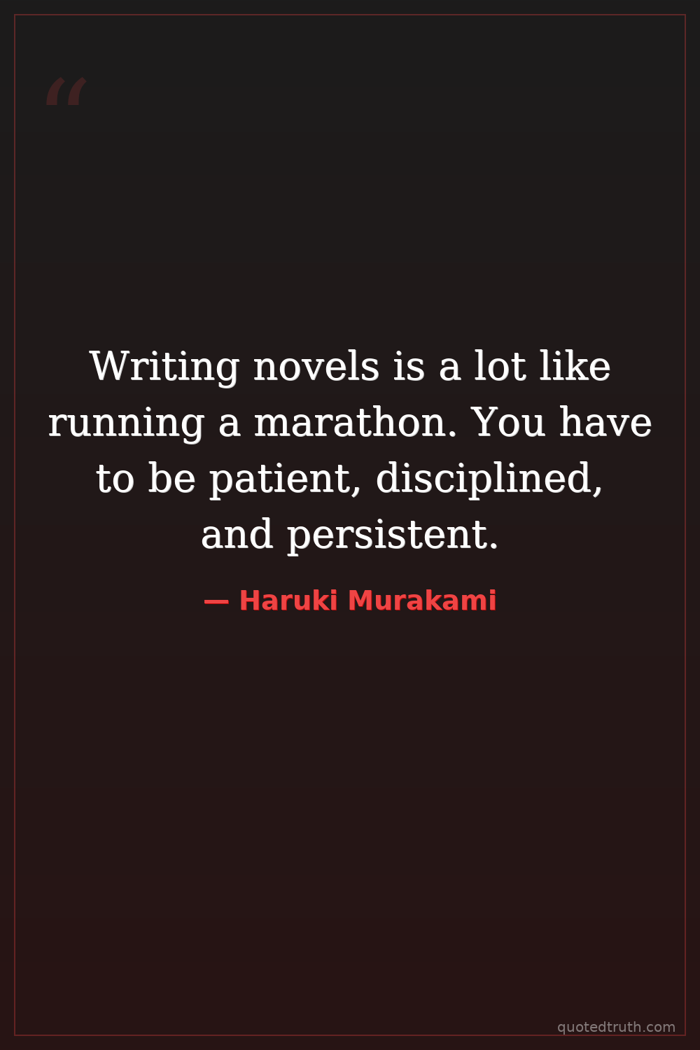 Writing novels is a lot like running a marathon. You have to be patient, disciplined, and persistent.