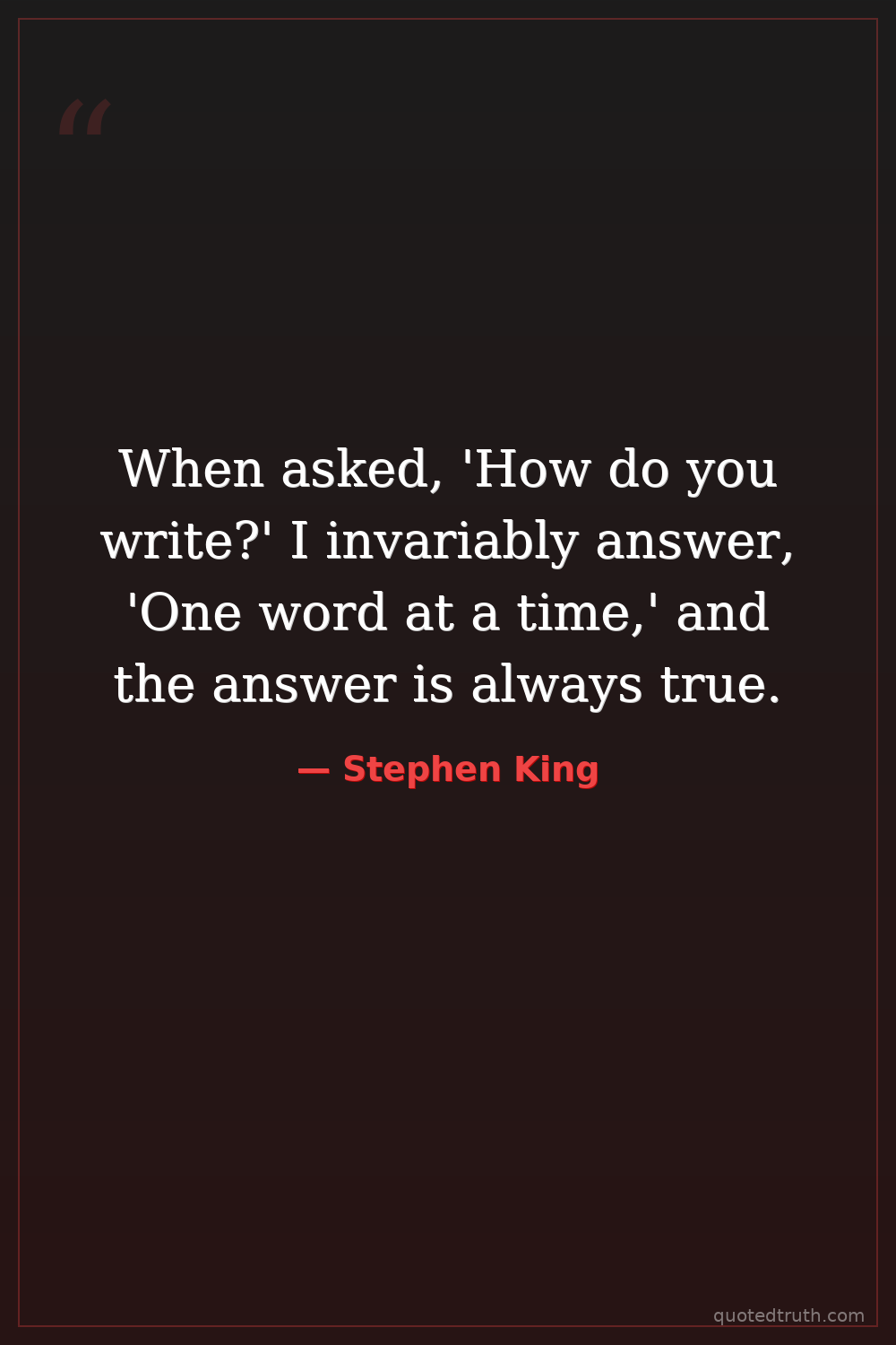 When asked, 'How do you write?' I invariably answer, 'One word at a time,' and the answer is always true.