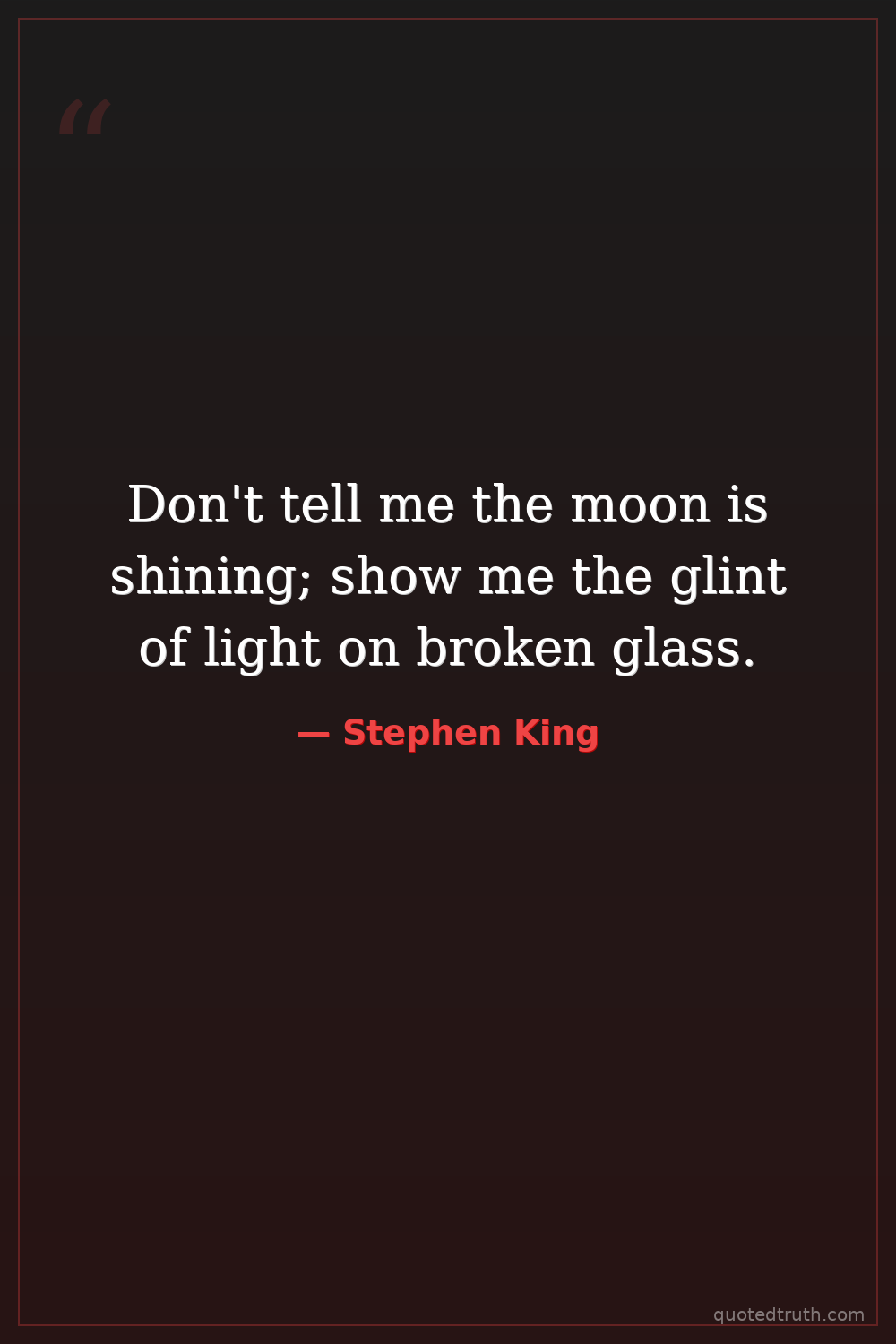 Don't tell me the moon is shining; show me the glint of light on broken glass.