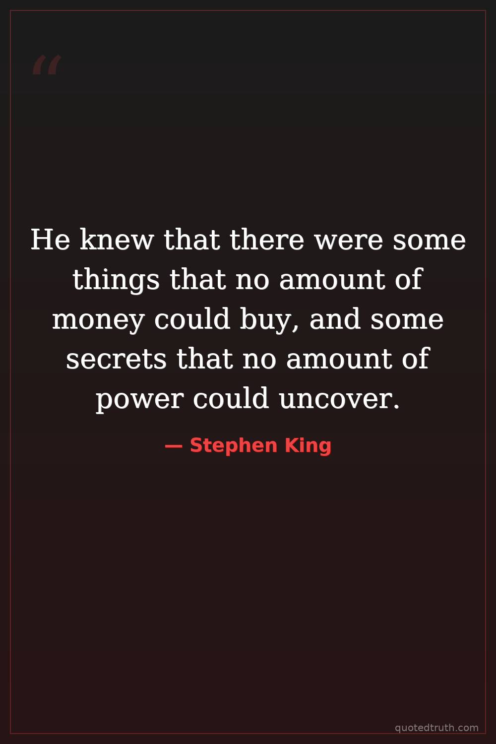 He knew that there were some things that no amount of money could buy, and some secrets that no amount of power could uncover.