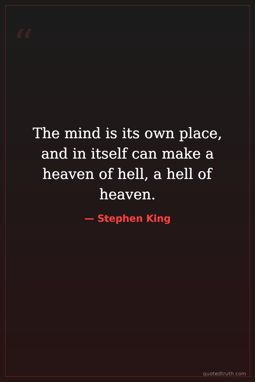 The mind is its own place, and in itself can make a heaven of hell, a hell of heaven.