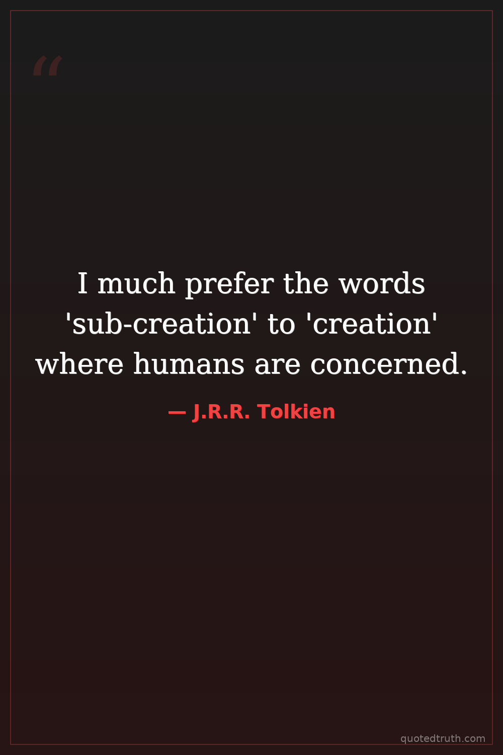 I much prefer the words 'sub-creation' to 'creation' where humans are concerned.