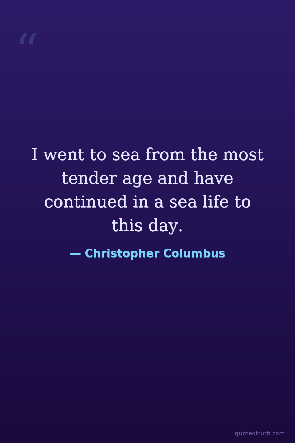 I went to sea from the most tender age and have continued in a sea life to this day.