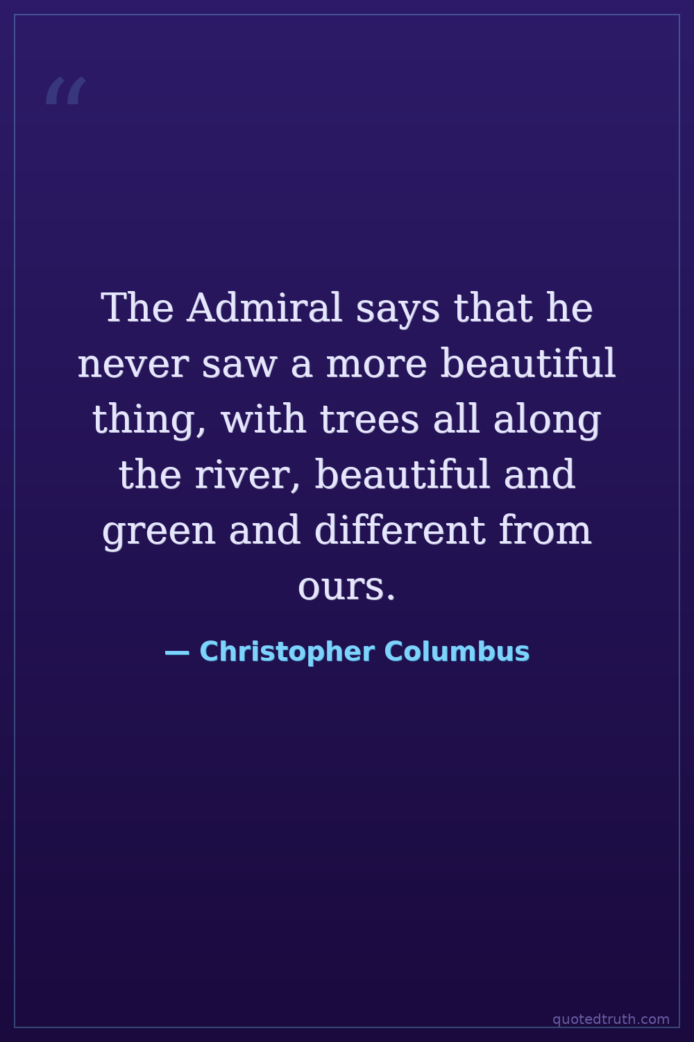 The Admiral says that he never saw a more beautiful thing, with trees all along the river, beautiful and green and different from ours.