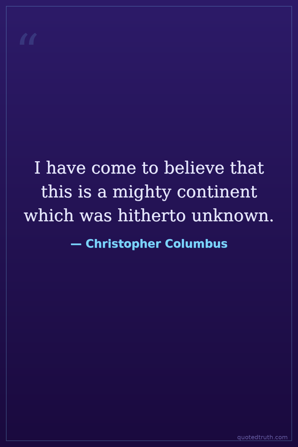I have come to believe that this is a mighty continent which was hitherto unknown.