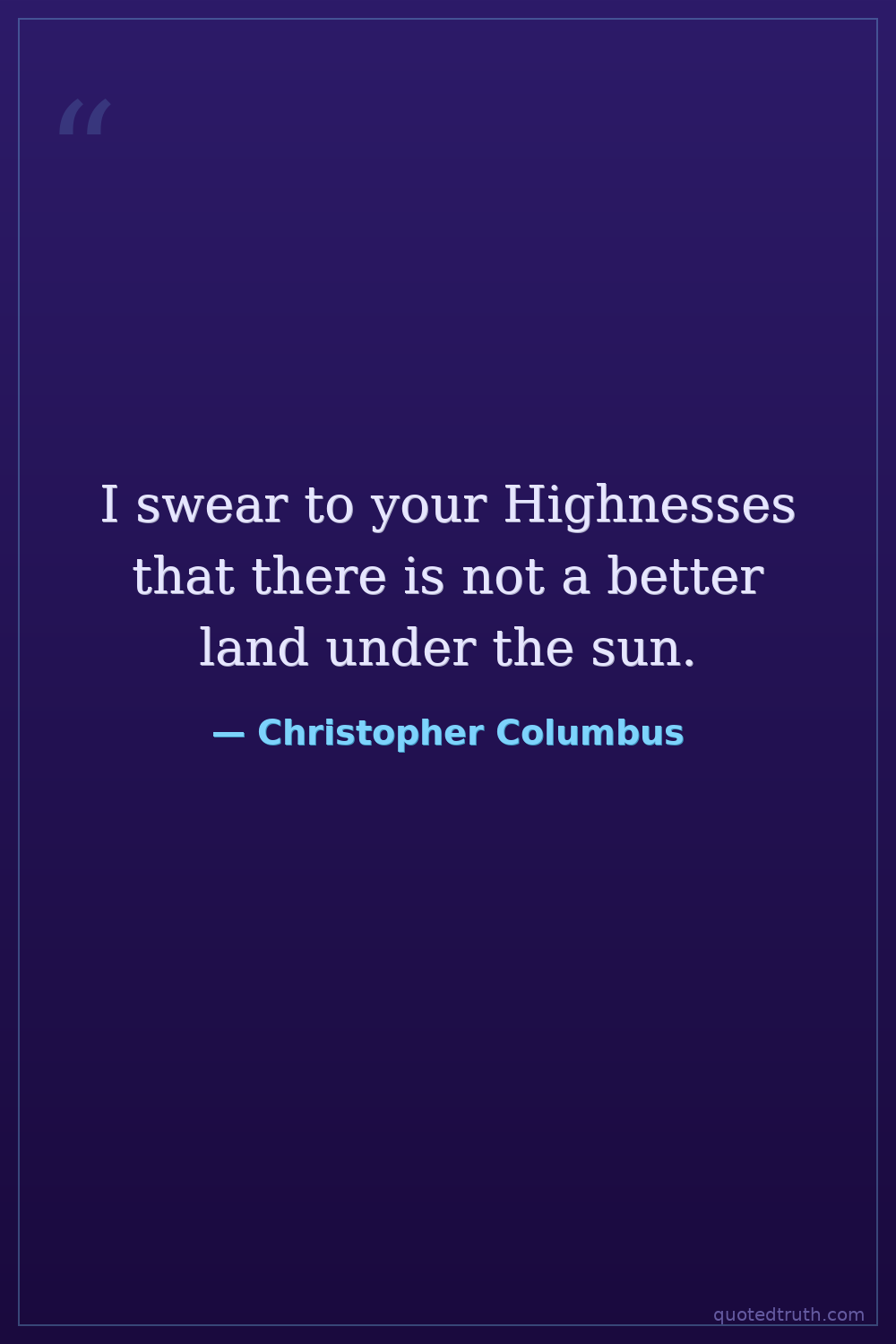 I swear to your Highnesses that there is not a better land under the sun.
