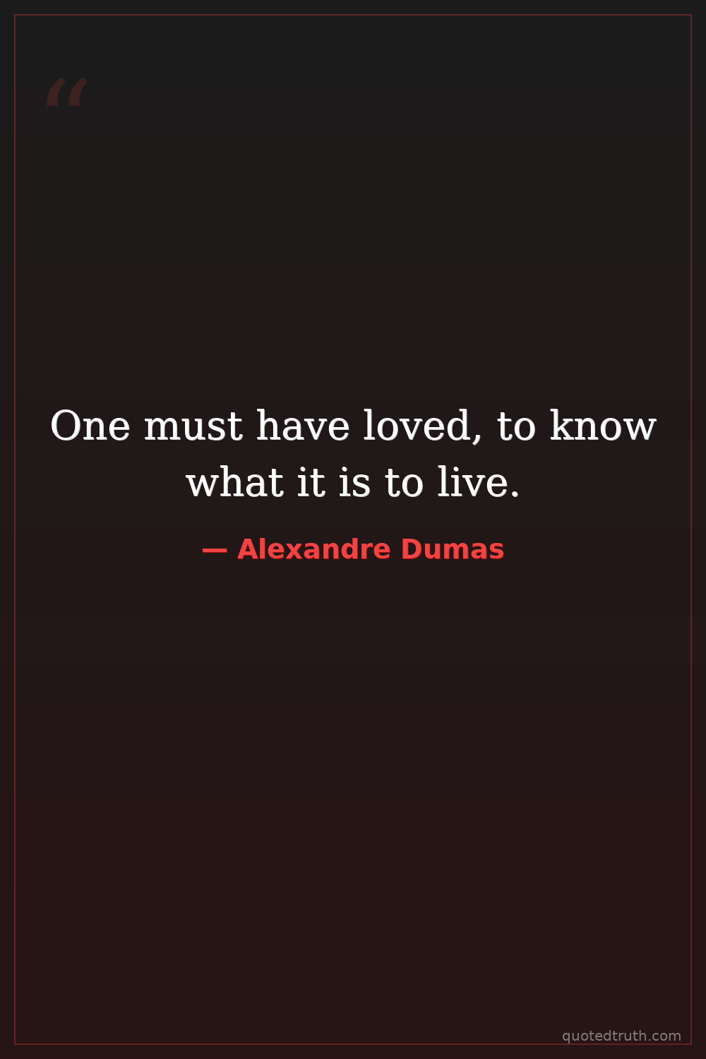 One must have loved, to know what it is to live.