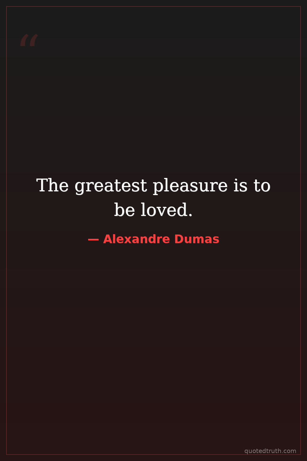 The greatest pleasure is to be loved.