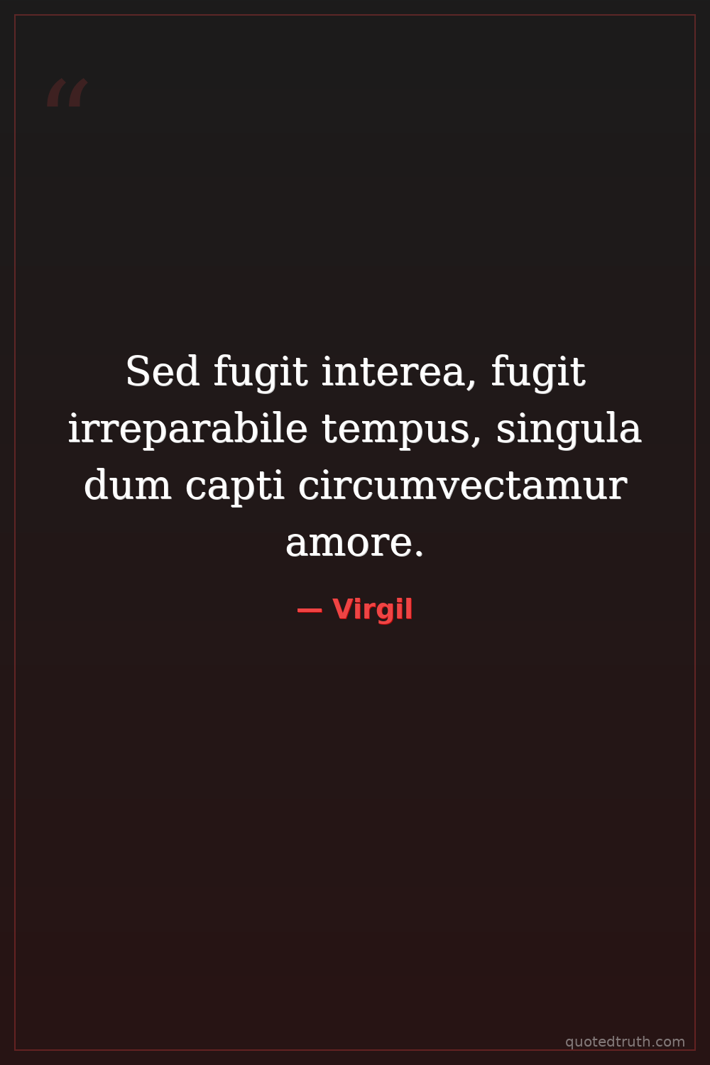 Sed fugit interea, fugit irreparabile tempus, singula dum capti circumvectamur amore.