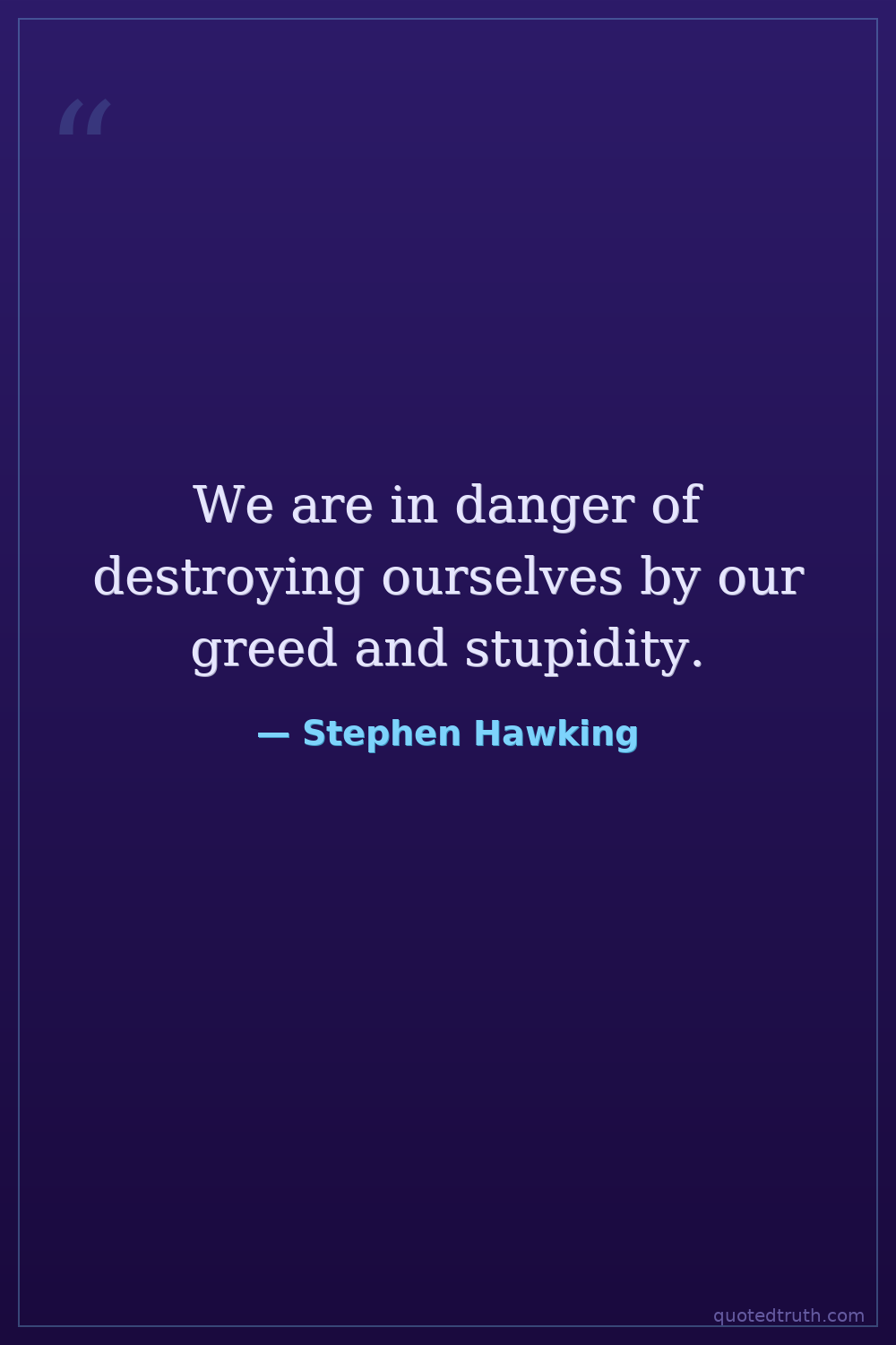 We are in danger of destroying ourselves by our greed and stupidity.