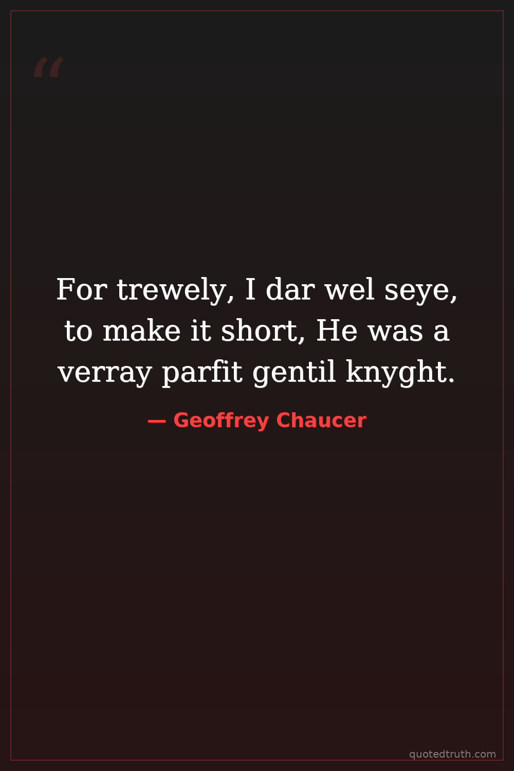 For trewely, I dar wel seye, to make it short, He was a verray parfit gentil knyght.