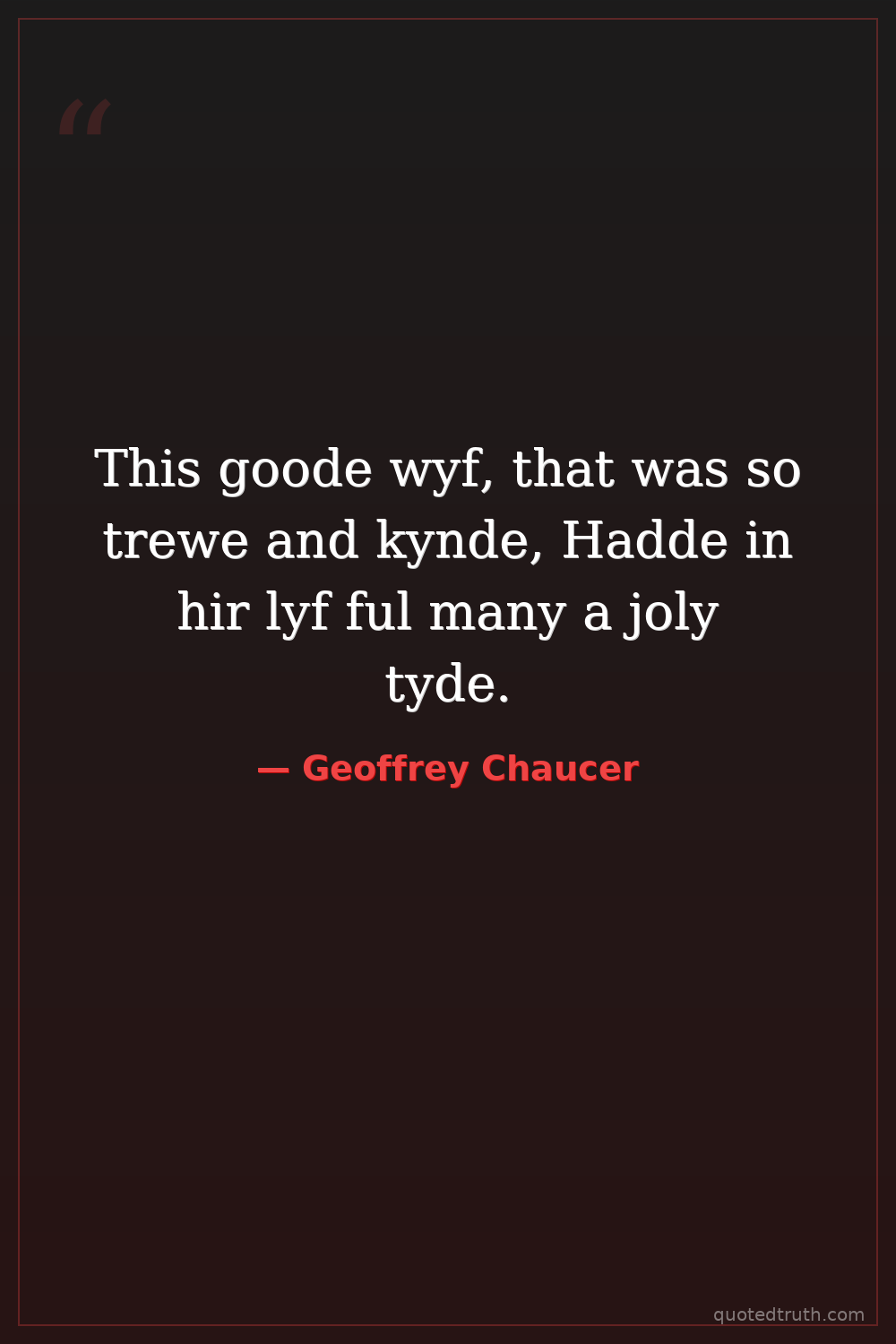 This goode wyf, that was so trewe and kynde, Hadde in hir lyf ful many a joly tyde.