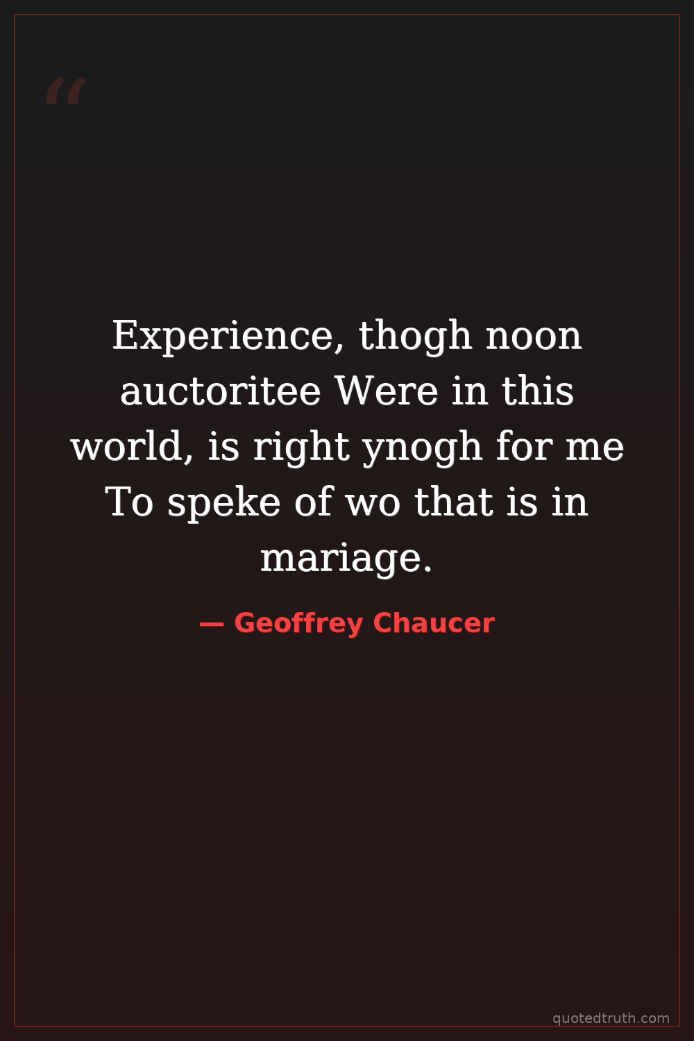 Experience, thogh noon auctoritee Were in this world, is right ynogh for me To speke of wo that is in mariage.