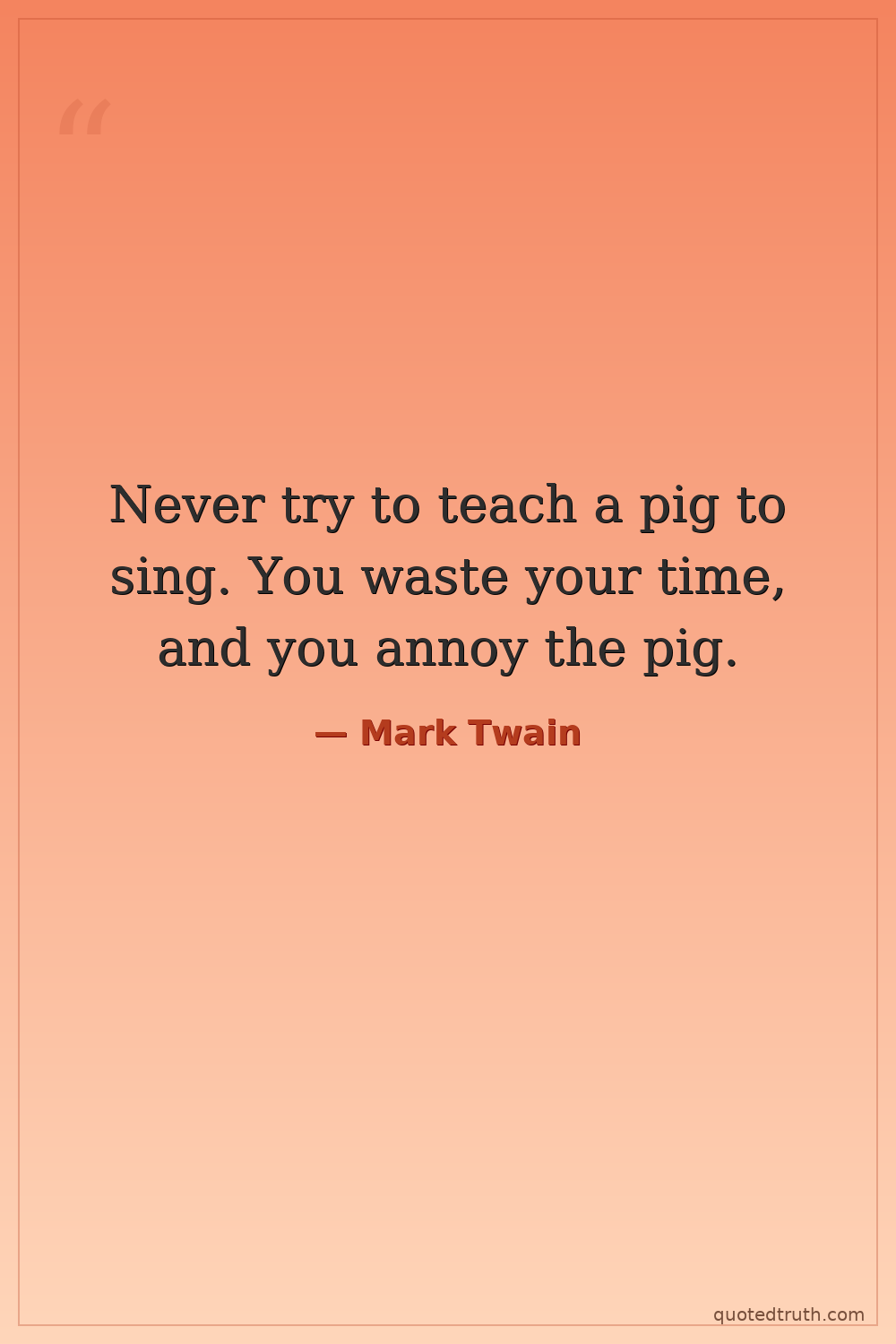 Never try to teach a pig to sing. You waste your time, and you annoy the pig.