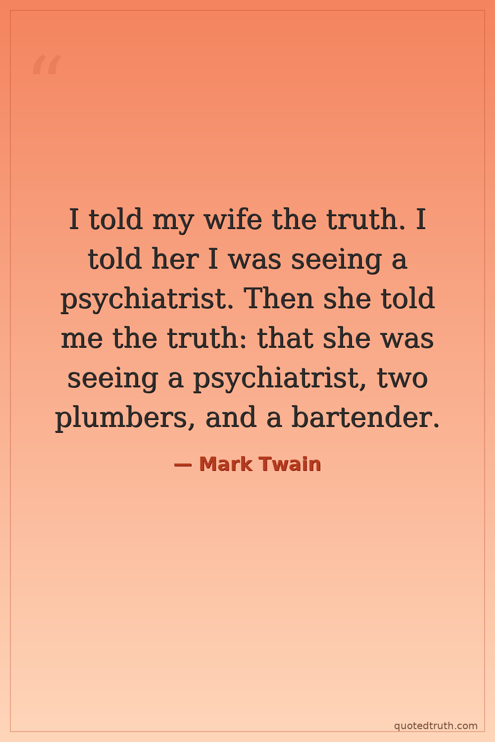 I told my wife the truth. I told her I was seeing a psychiatrist. Then she told me the truth: that she was seeing a psychiatrist, two plumbers, and a bartender.